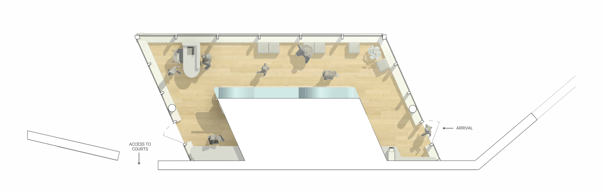 We pulled from padel’s roots—playful curves, bright energy, and that hit of whimsy + motion—to make the space feel joyful the second you walk in.